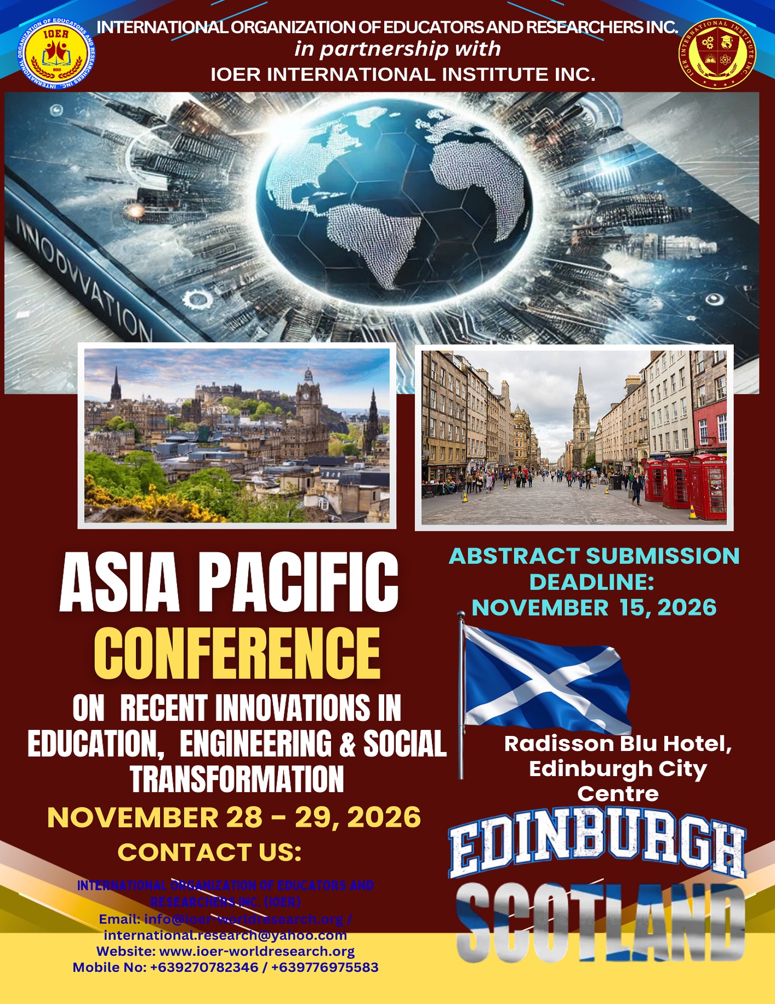 Asia Pacific Conference on Recent Innovations in Education, Engineering & Social Transformation